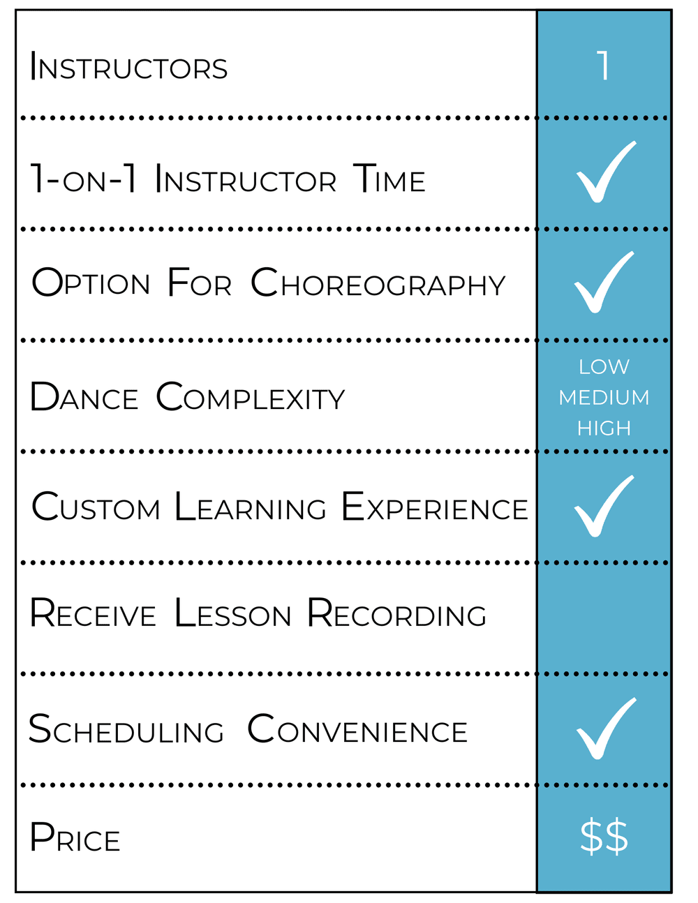It is our experience that every couple has different needs preferences and time schedules but everyone has the ability to be a good dancer with enough. I enjoy teaching people from the ground up. Dance lessons can be taken in one of our 3 locations in Chicago Lincoln Park or on the edge.